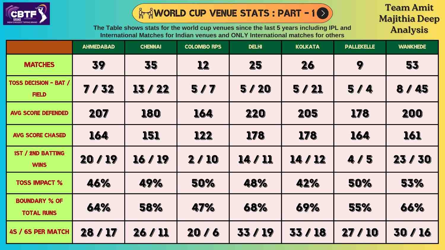 WORLD CUP VENUE STATS: PART-1